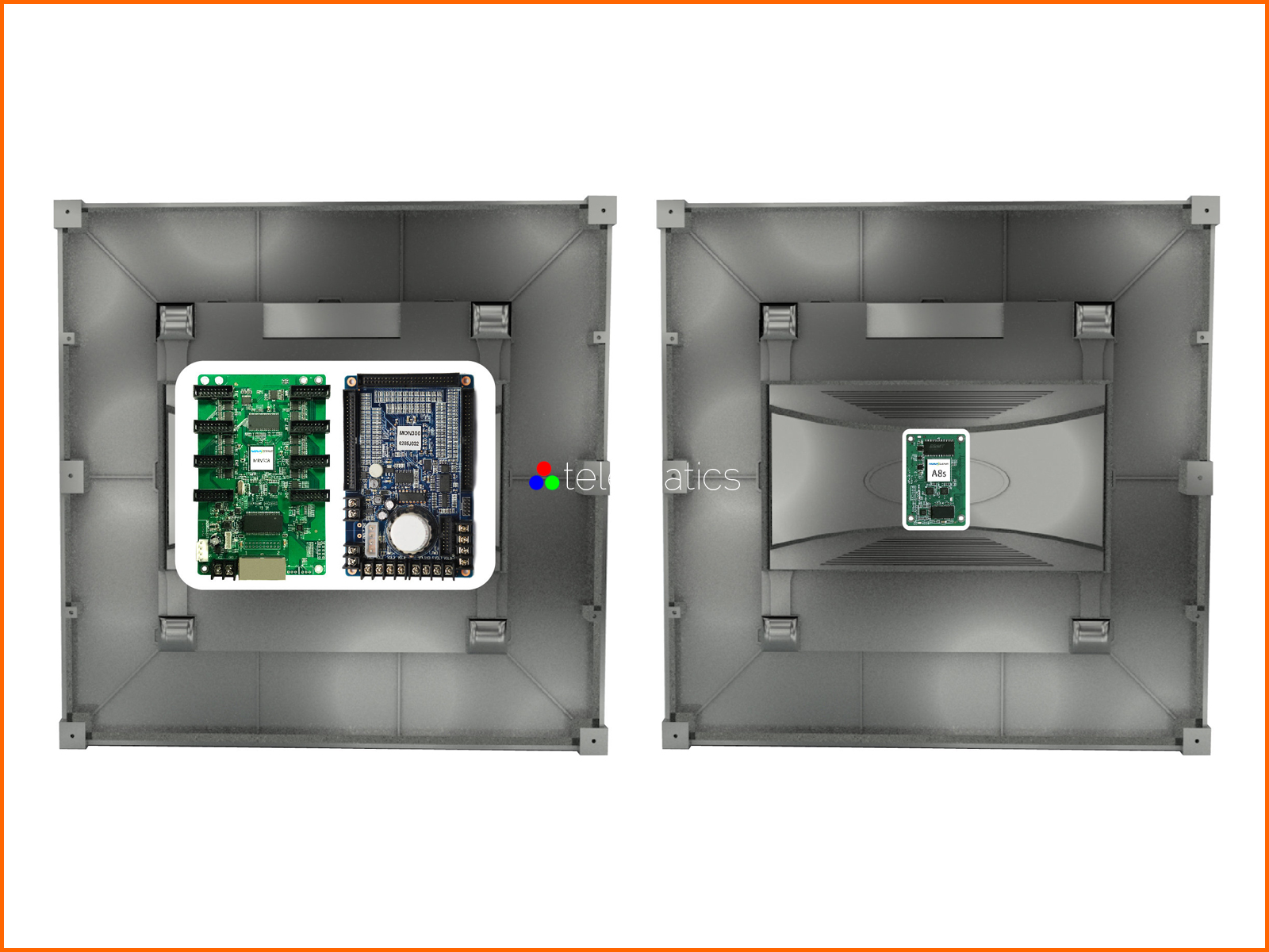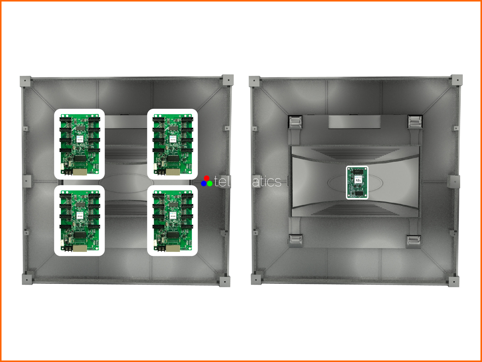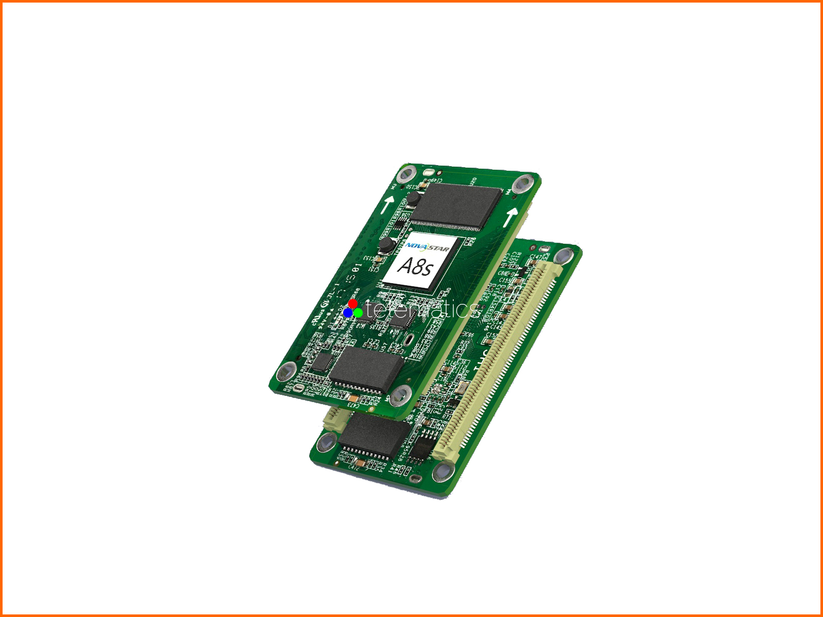 Let’s use a side by side comparison to look at the difference an Armor Series card can make. If we use a regular receiving card to load a P2.5 display, and then use an A8s receiving card to load a P2.5 display, we can easily see the difference. While we’re using just one card in both scenarios, the display loaded by the A8s card is much larger. When working with fine pitch applications, this increase in resolution makes all the difference.