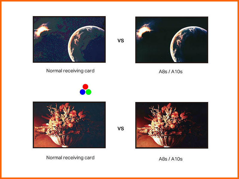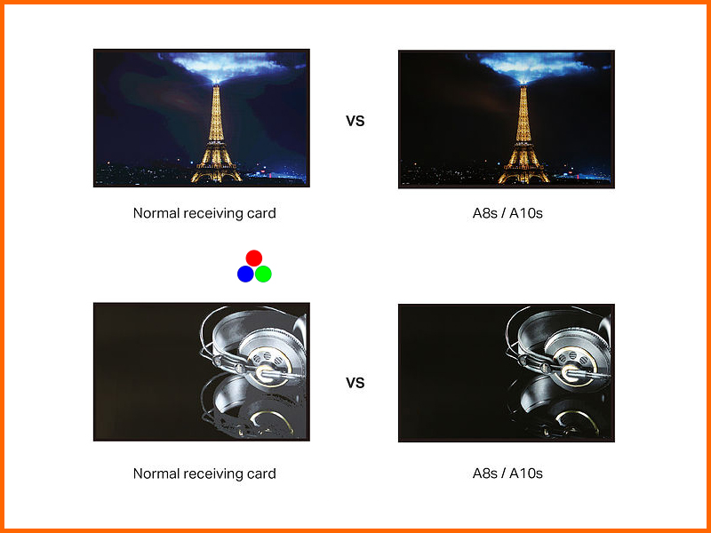 This improvement in image quality is due to two proprietary NovaStar technologies featured on the A8s and A10s receiving cards.