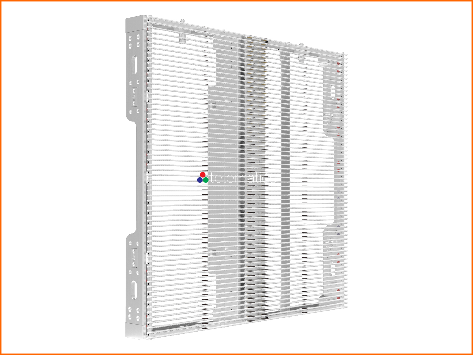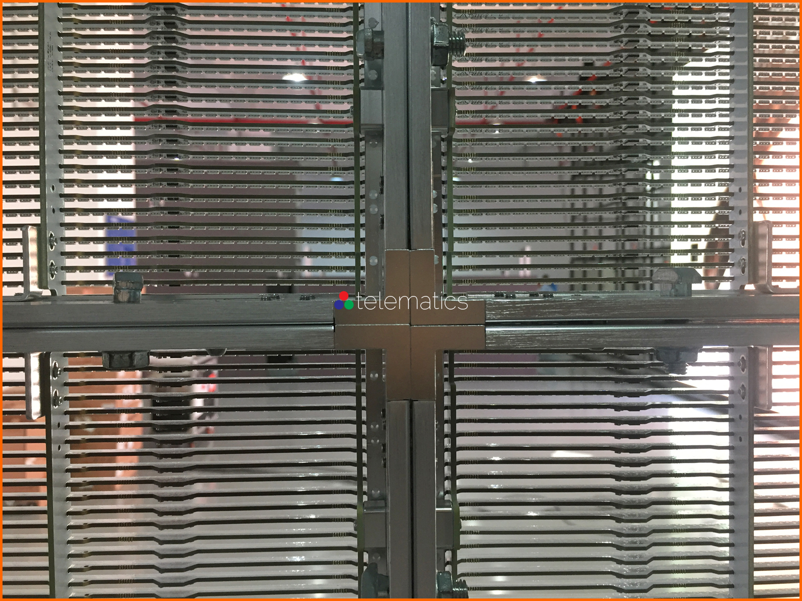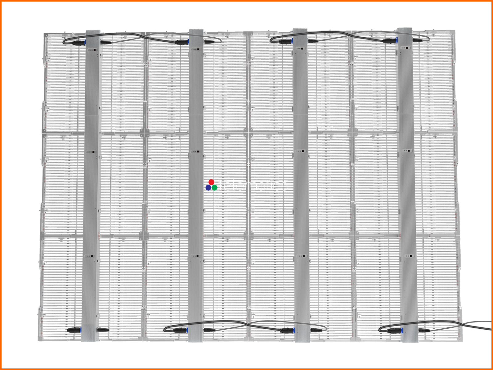 In our blended models, pixels are space closer horizontally and wider vertically. This means our Series G2 · 5 and G3 · 7 create the effect of higher resolution while maintaining transparency. Pixel density starts at 9,216 and increases incrementally to more than seven times that number at 73,728 pixels per square meter across 5 models. Refresh rates are 1920 Hz with the option to upgrade to 2880 Hz. Power cables and data connectors are uncluttered and join the panels together as elegantly as possible.