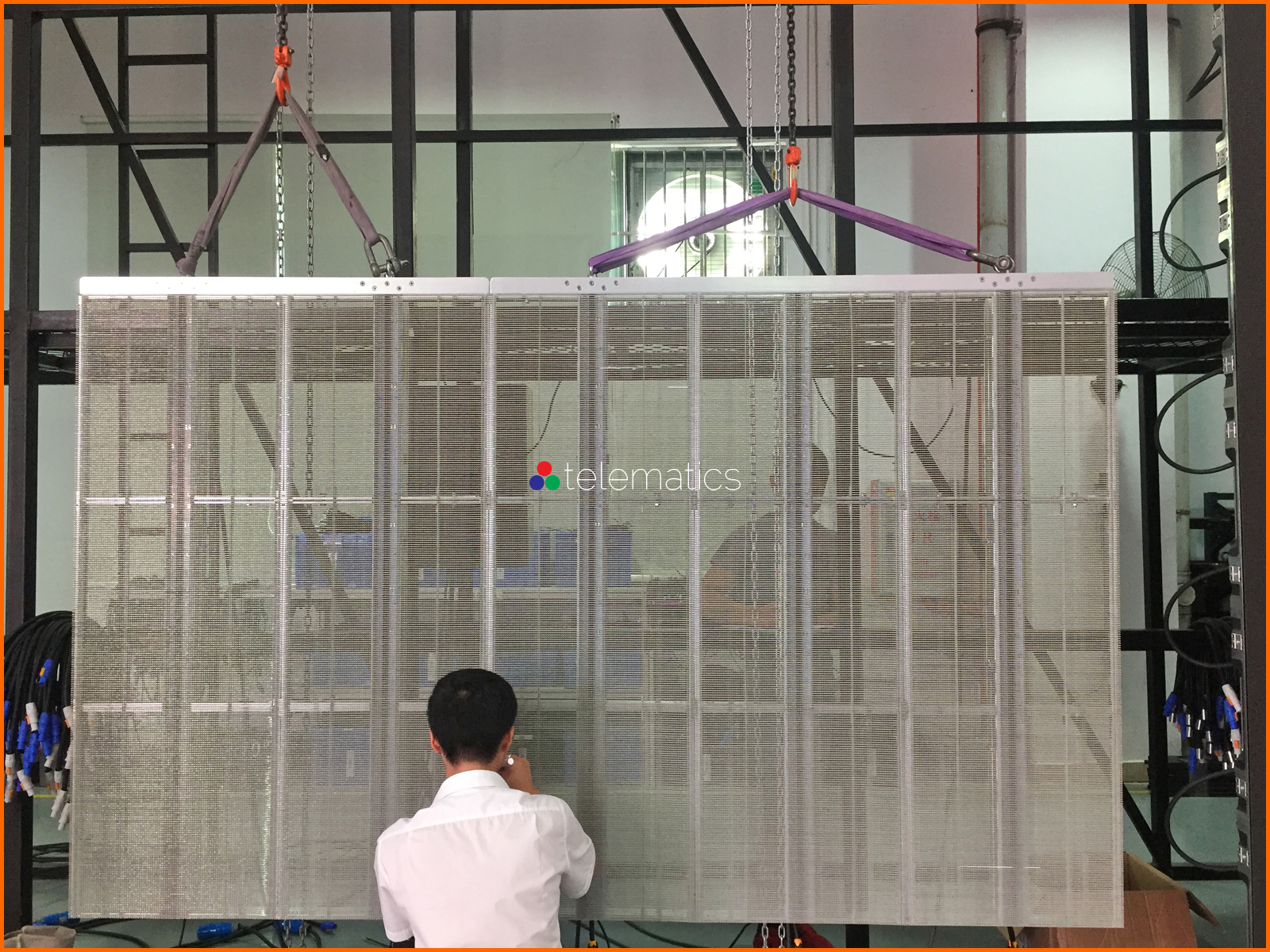 Install the Series G to an overhead fly bar and suspend the finished display directly behind a storefront window. If required, our technicians will provide mechanical drawings to create a steel frame locally or one can be built and shipped with your order.