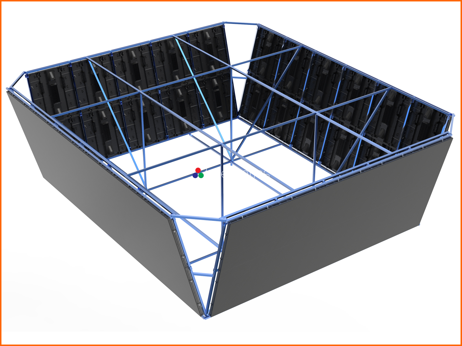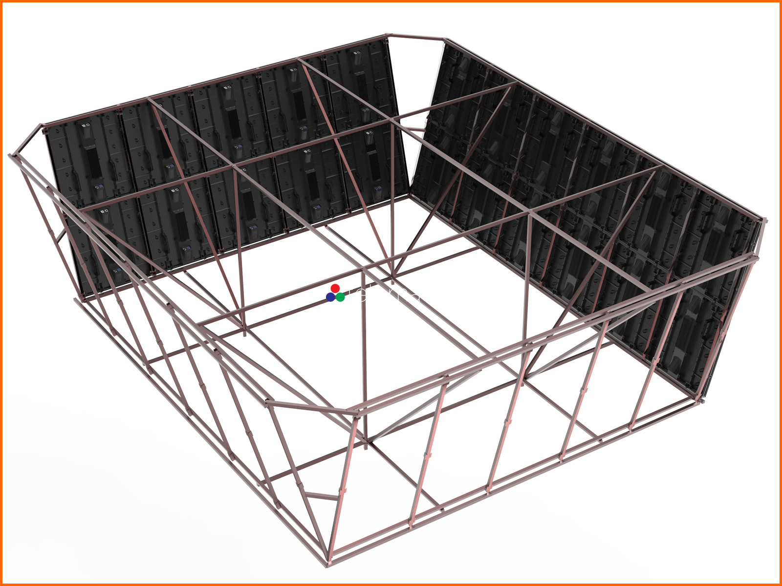 Install the Series M to a frame using the 4 corner anchors or assemble the panels using hanging bars or floor supports. Our technicians will provide mechanical drawings to create a steel frame locally or one can be built and shipped with your order.