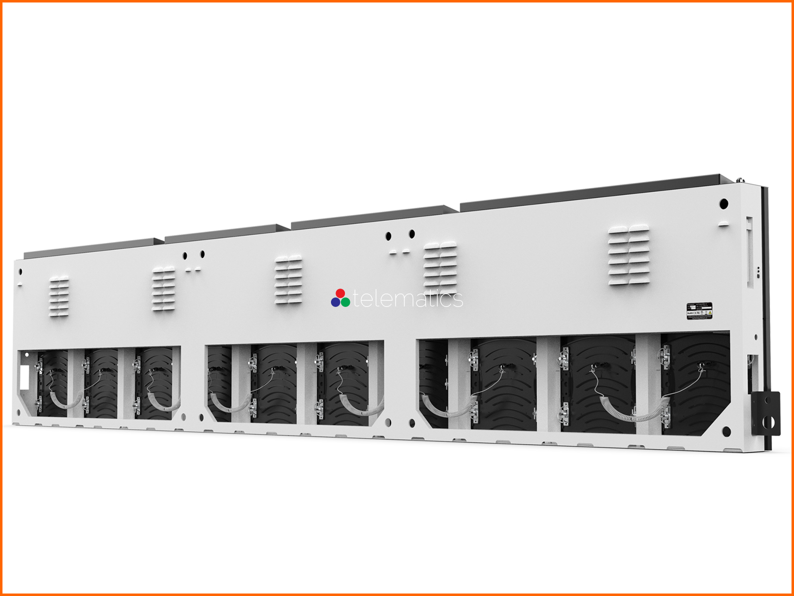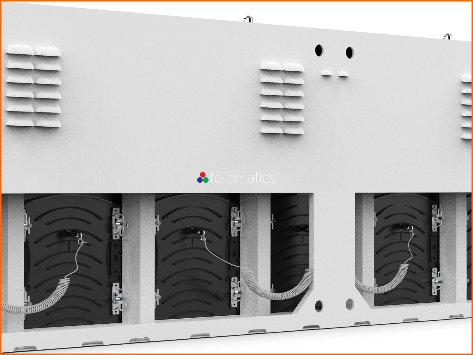 The aluminum cabinets are secured to a frame using 12 millimeter bolts at each corner. Our technicians will provide mechanical drawings to create a steel frame locally or one can be built and shipped with your order.